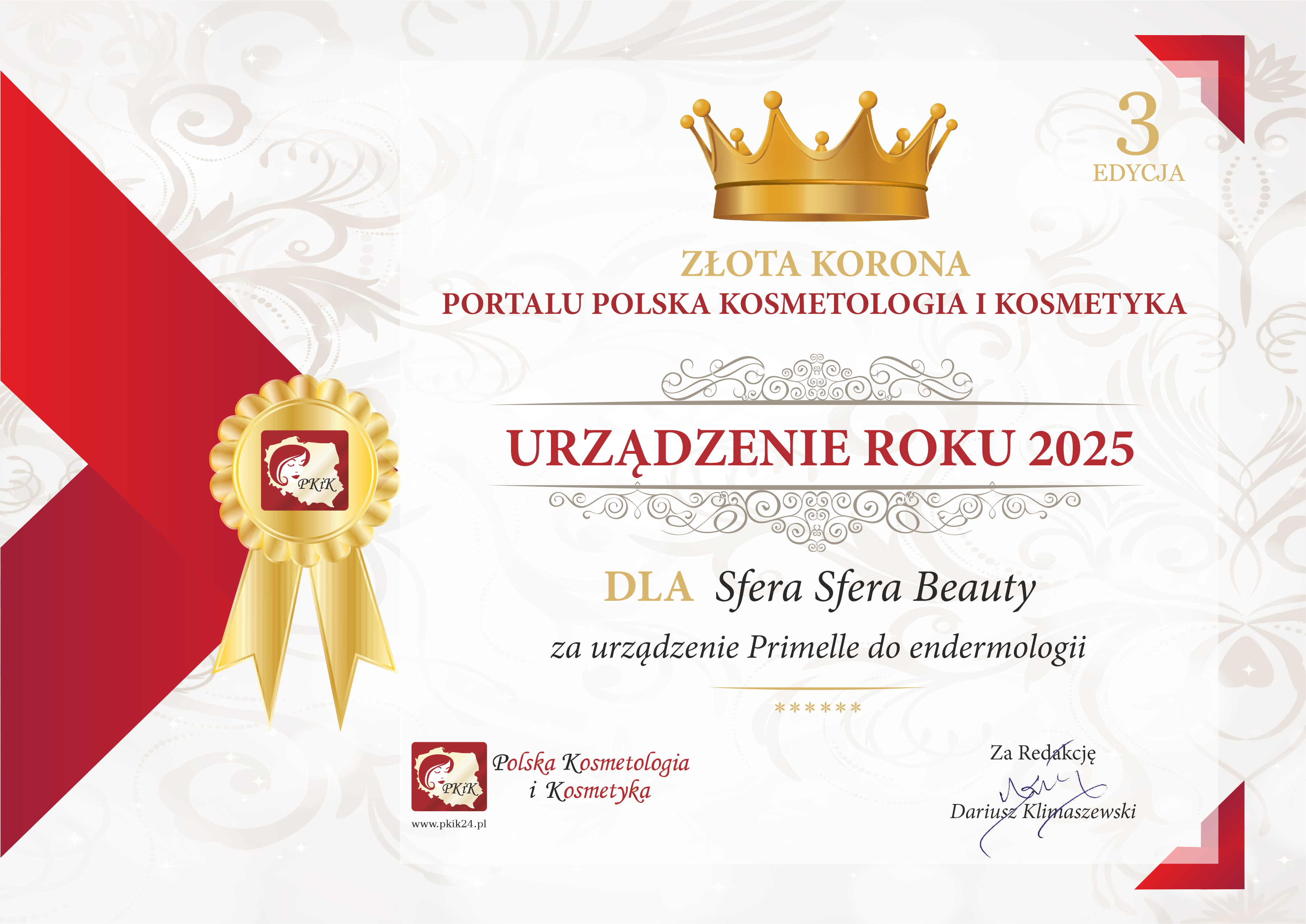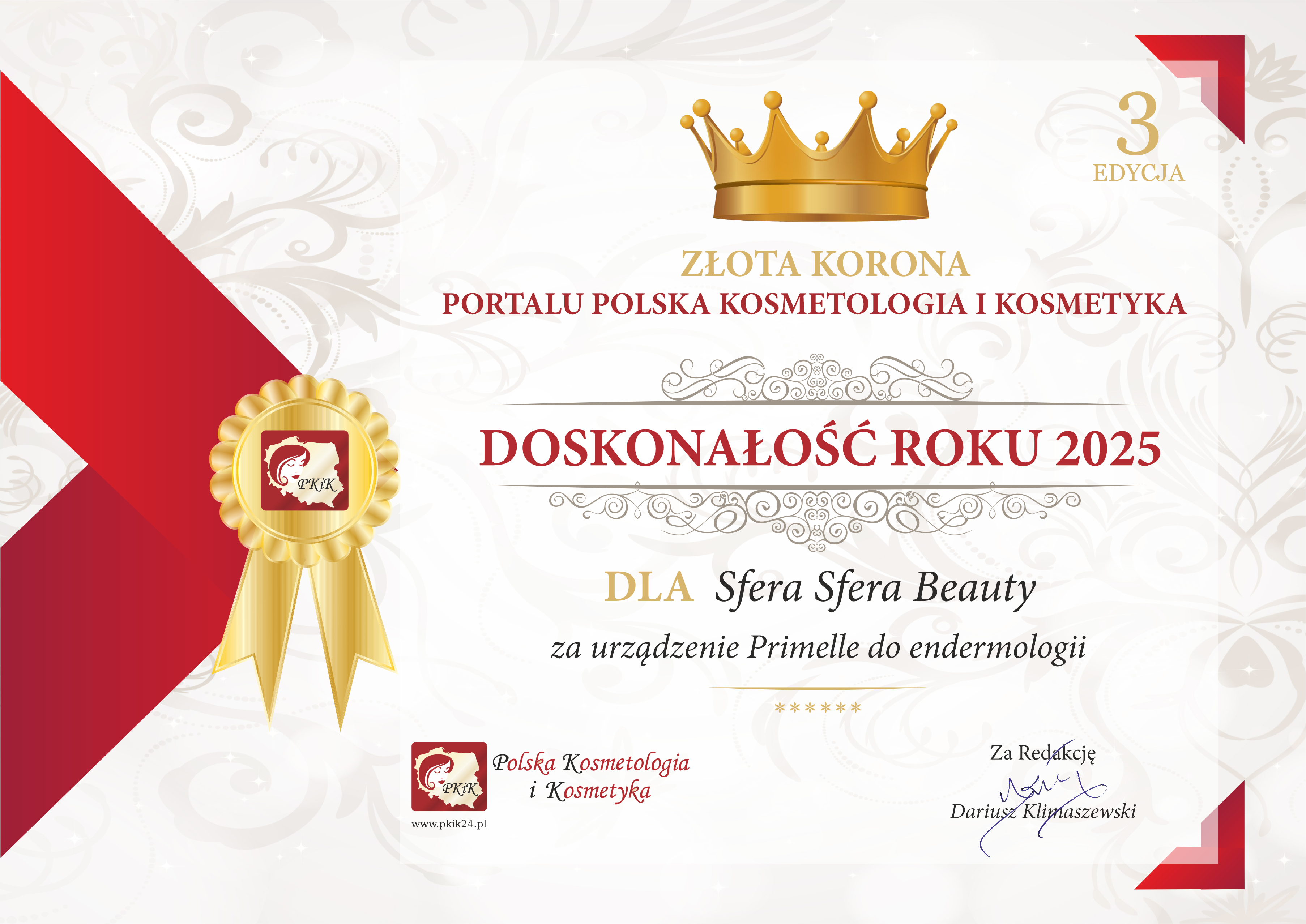 Firma roku dla Sfera Cosmetology za urządzenie Primelle do endermologii